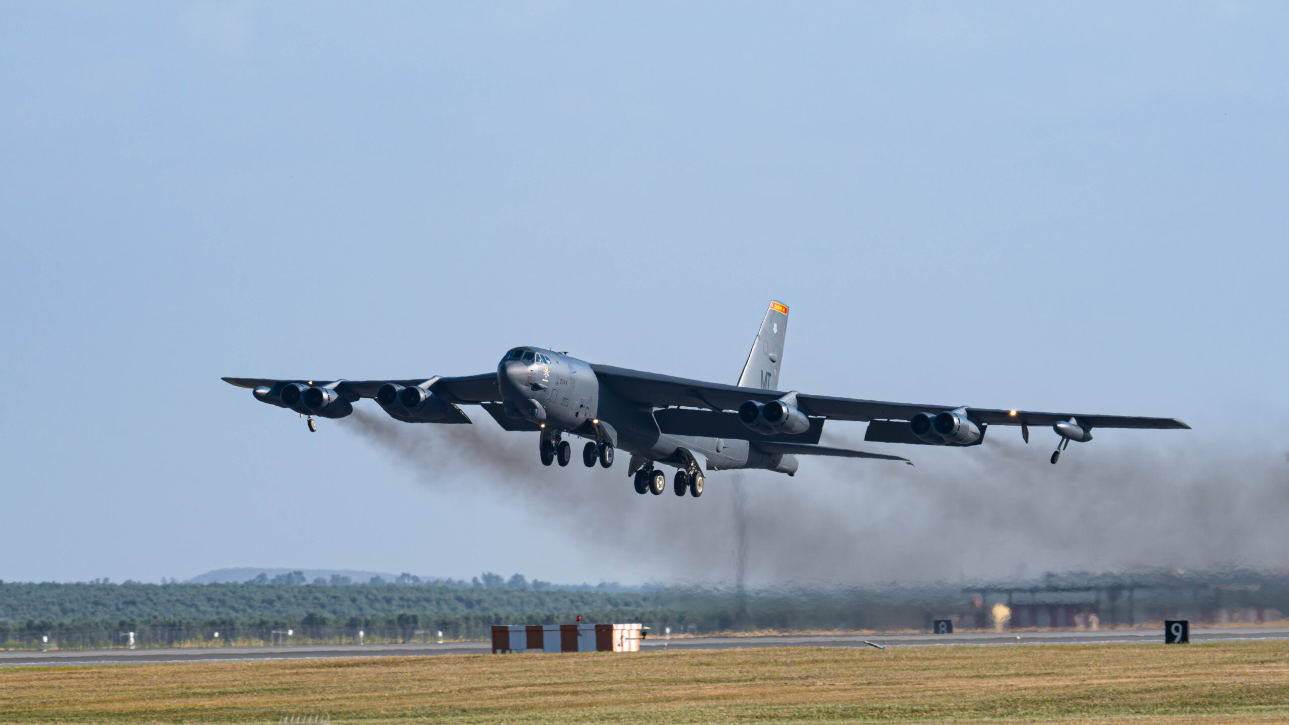 A U.S. Air Force B-52H Stratofortress assigned to the 23rd Expeditionary Bomb Squadron takes off in support of Bomber Task Force Europe (BTF) at Morón Air Base, Spain, May